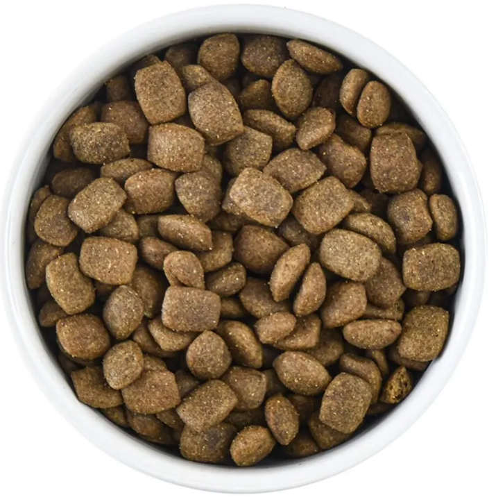 Состав: дегидрированное куриное мясо 26%, рис, маис, куриный жир (7%), ферментированный протеин, натуральная вкусо-ароматическая добавка, витаминно-минеральный комплекс, дегидратированные цельные яйца, рыбий жир, жом свёклы, топинамбур (пребиотик), DL-метионин (2000 мг/кг), ромашка, расторопша, экстракт Юкки Шидигера (500 мг/кг), антиоксидант.