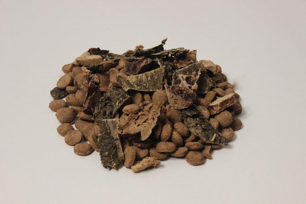 работа органов,нормализуется строение мышц и состояние костей.Корм Meat-это натуральный источник мяса и мясопродуктов ,он не только содержит мясо,но и еще порадует вашего питомца кусочками сушеного бараньего легкого и рубца. Мясопродукты высушены под инфракраснымилучами и сохранили максимум полезных свойств.