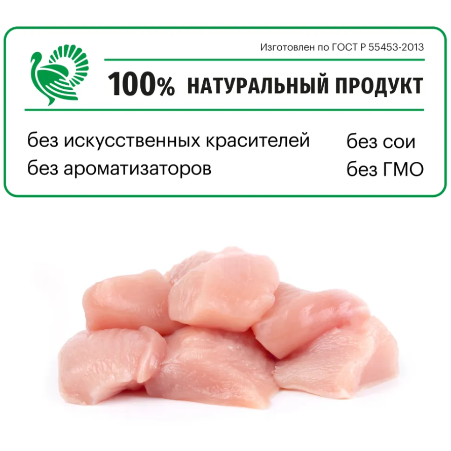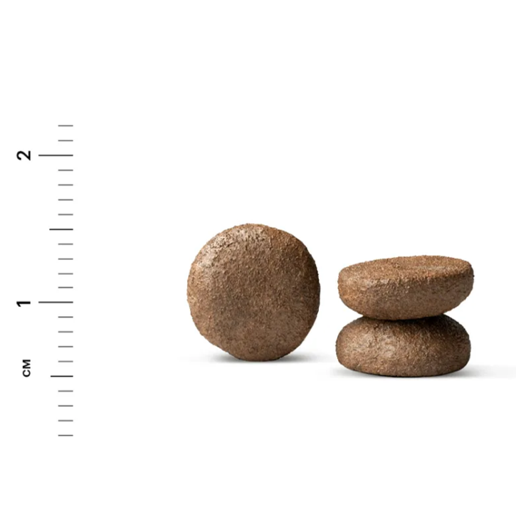 Дегидрированное мясо (в т.ч. индейка), цельные злаки, животный жир (в т.ч. лососевый, консервированный витамином E), растительная клетчатка, высокоусвояемый растительный белок, гидролизованные мясные белки, пивные дрожжи (источник маннанолигосахаридов), витаминно-минеральный комплекс, Юкка Шидигера, морская капуста, пробиотики (Bacillus subtilis, Bacillus licheniformis), сушеное яблоко. Cохранено витамином С и природным токоферолом (источник натурального витамина Е).