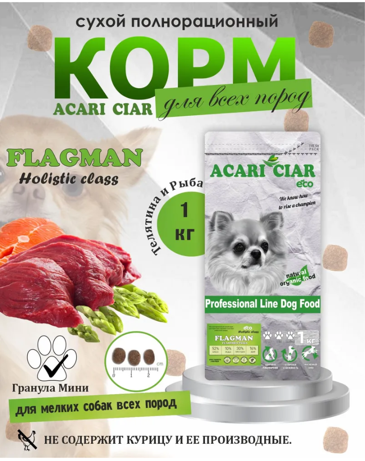 Корм Акари Киар Флагман Мини холистик телятина для собак 1 кг