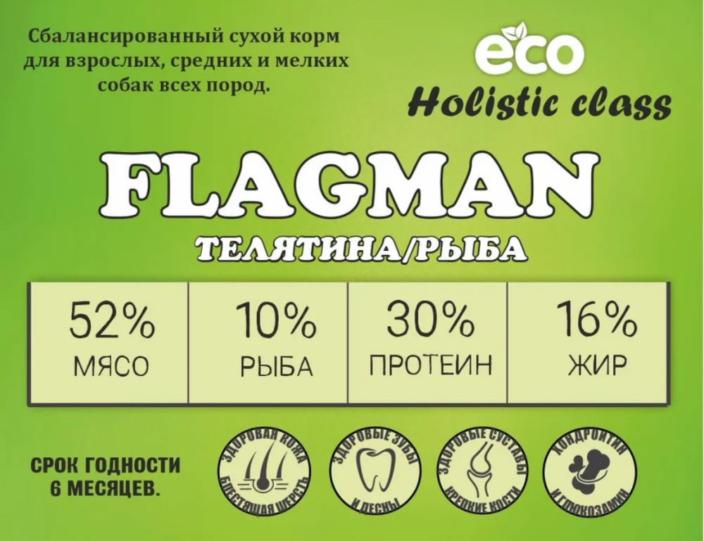 Мясо телятины 20%,nМясной сбор говяжий (рубец, вымя, сердце, почки, обрезь) 10%,nРыба лососевых пород 3%, Рыба морская 3%,nСублимированное мясо телятины высшего сорта 10%,nСублимированное филе рыб осетровых пород высшего сорта 4%,nСухое цельное яйцо, Рис Кубанский, Жир говяжий, Жир индейки,nТыквенное масло, Масло лососевое, Масло оливковое Экстра Вирджин(в качестве консерванта используется Вит Е.),nНатуральный хрящ теленка, Дегидрированный хрящ рыб осетровых пород и визига(источник хондроитина и глюкозамина),nВитаминно-минеральный комплекс, Тыквенные семена, Спаржа,nТоматы, Шпинат, Рябина, Яблоко (натуральный источник диетической клетчатки),nЭкстракт бархатцев прямостоячих( источник лютеина),nЭкстракт цикория (натуральный пребиотик и источник инулина),nПивные дрожжи (естественный источник MOS и FOS). L-карнитин,nСемя льна, Кора дуба, Расторопша, Юкка Шидигера, Мико Карб, nПитательность:
