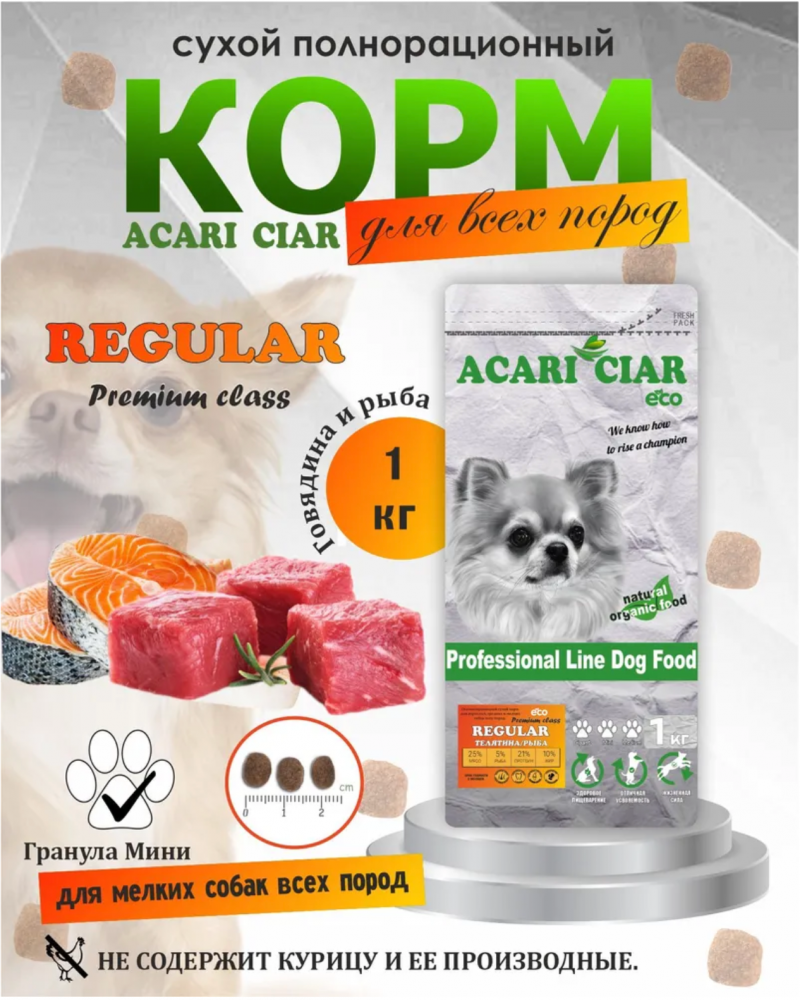 Корм Акари Киар РЕГУЛЯР МИНИ Говядина+суб подукты для собак 1 кг