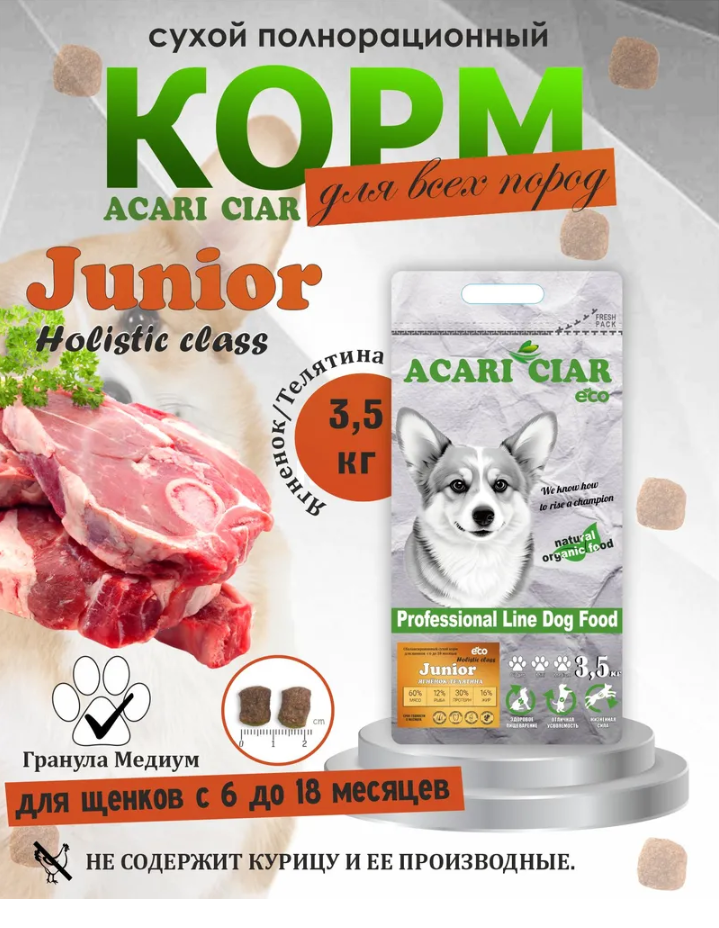 Корм Акари Киар ЩЕНКИ Юниор Медиум Ягненок и Телятина