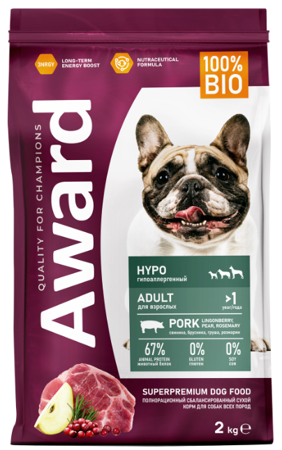 Сухой корм AWARD HYPO для взрослых собак всех пород со свининой с добавлением брусники, груши и розмарина 2 кг