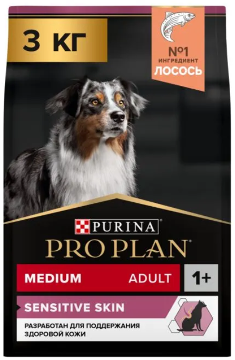 Корм PRO PLAN для собак средних пород с чувствительной кожей с комплексом Optiderma лосось c рисом