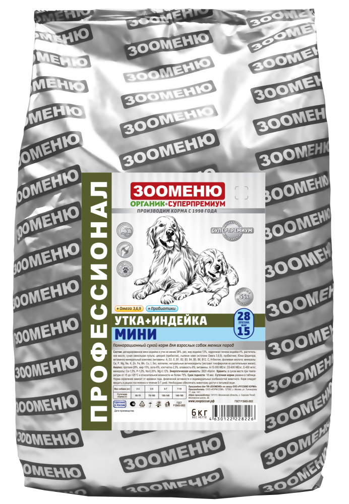 Корм сухой Зооменю Утка+индейка МИНИ для собак малых пород