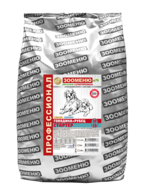 Сухой корм для собак Зооменю "СТАРТЕР" (Говядина + Рубец) 29/18