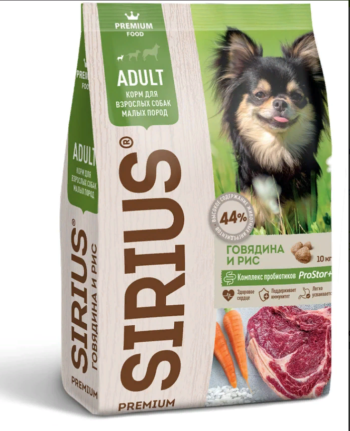 Сухой корм Sirius (Сириус) для взрослых собак мини пород с говядина