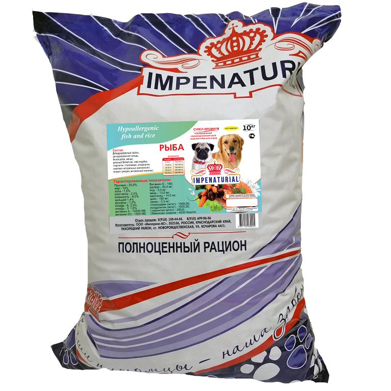 Корм для собак Империал гипоаллергенный для всех пород с рыбой 10 кг