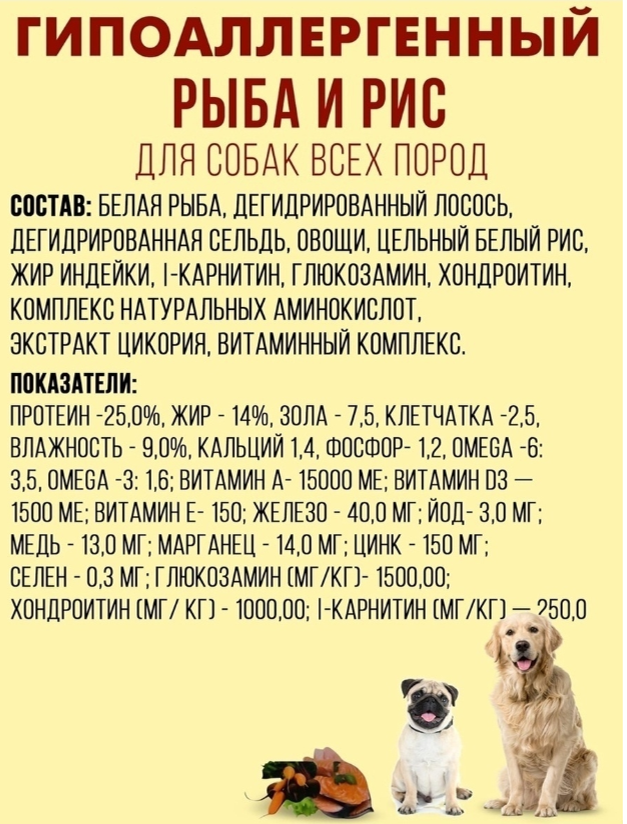 Hypoallergenicfishandriceдля собак всех пород