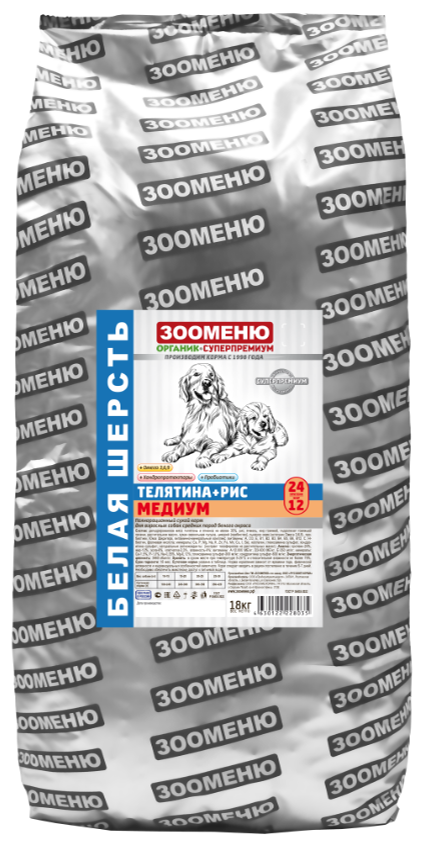 Корм сухой Зооменю Телятина+рис МЕДИУМ для собак средних пород