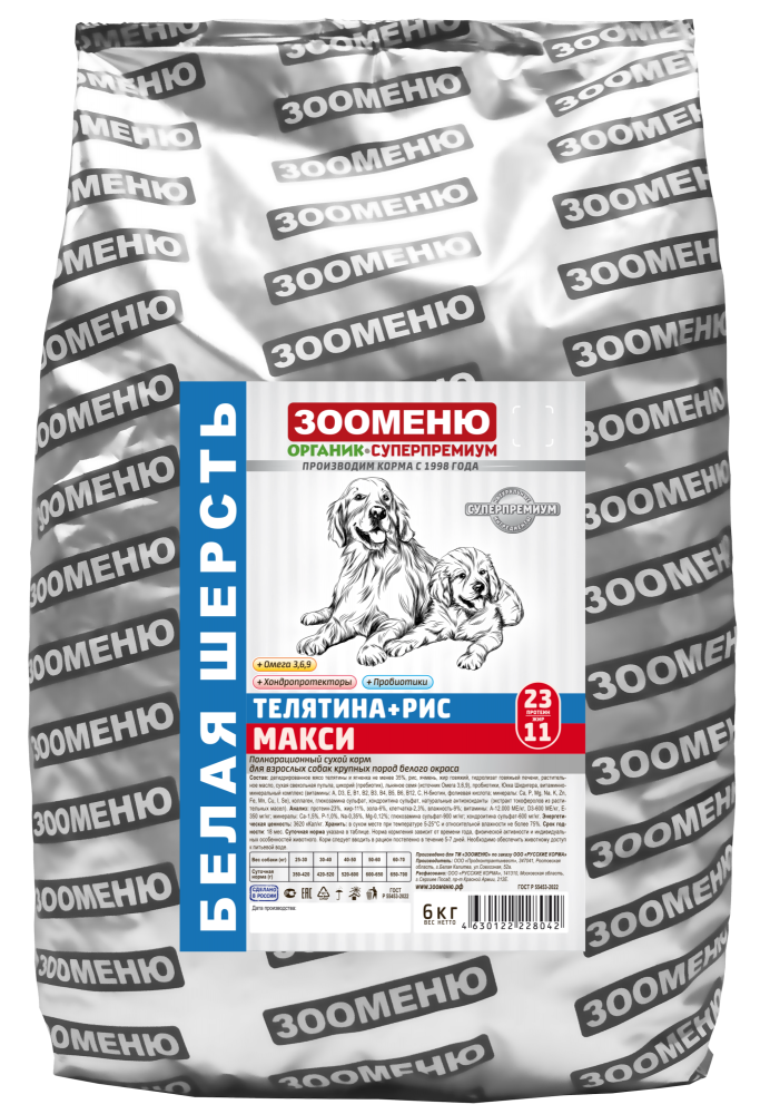 Корм сухой Зооменю Телятина+рис МАКСИ для крупных пород