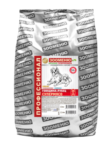 Корм сухой Зооменю Говядина+рубец "СУПЕРМЯСО" для собак средних и крупных пород