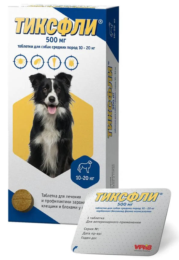 ТИКСФЛИ 500 мг, таблетки для собак средних пород 10-20 кг, 1