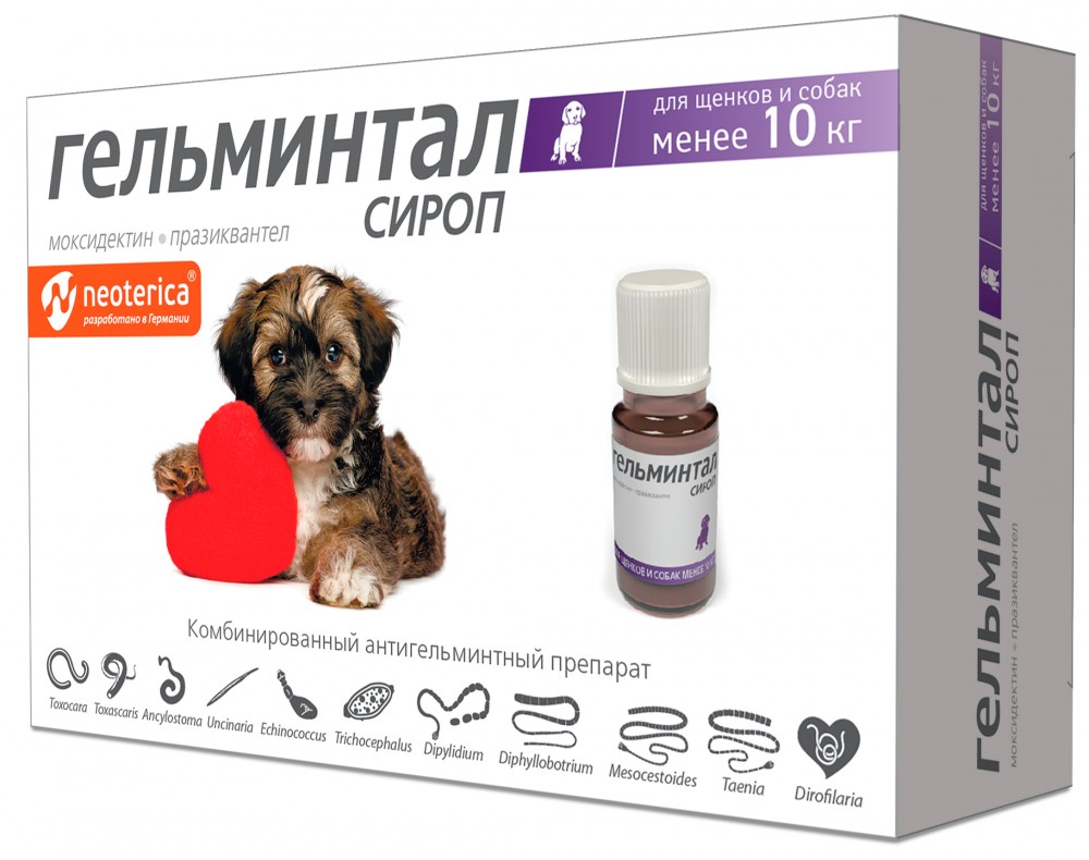 Гельминтал Сироп противопаразитарное средство для щенков и собак до 10 кг