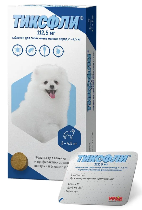 ТИКСФЛИ 112,5 мг, таблетки для собак очень мелких пород 2-4,5 кг, 1