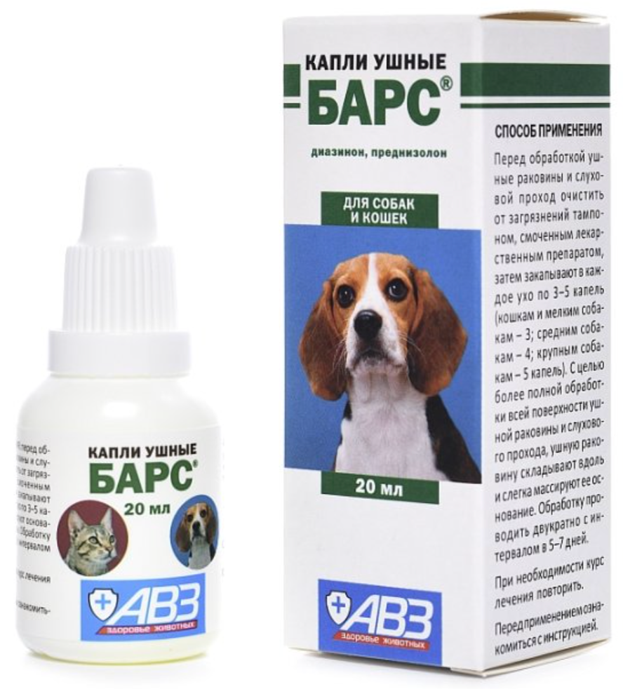Капли ушные для кошек и собак АВЗ Барс 20мл