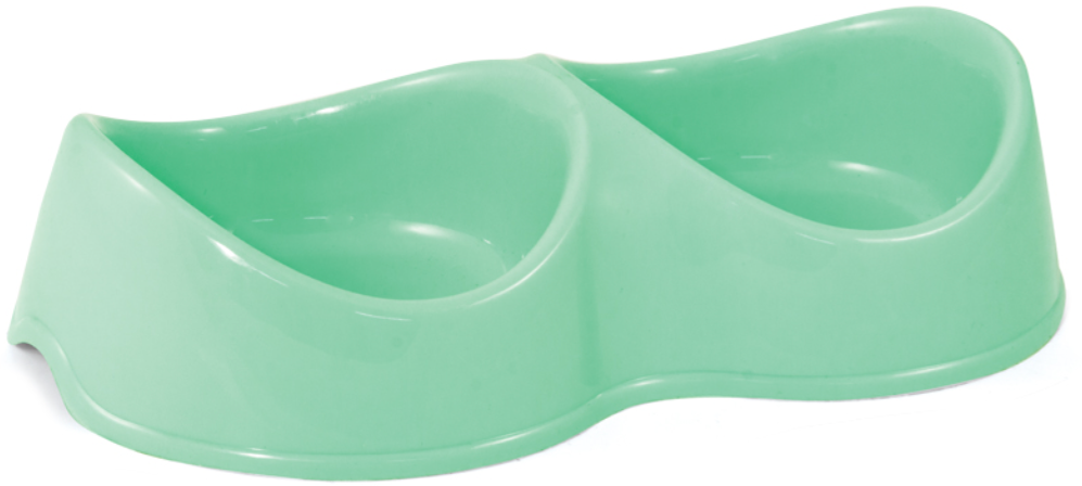 Миска для кошек и собак Triol пластиковая двойная "Бисквит", 2*0,2л. бирюзовая