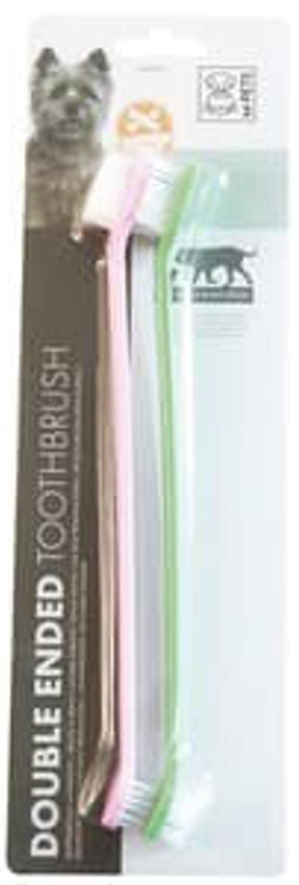 Двусторонняя зубная MPets щетка 2x22 см. Двойные чистящие насадки подходят для маленьких и больших поверхностей зубов помогают удалять налет и мусор. Для профилактики в домашних условиях. Подходит ля маленьких и больших собак.