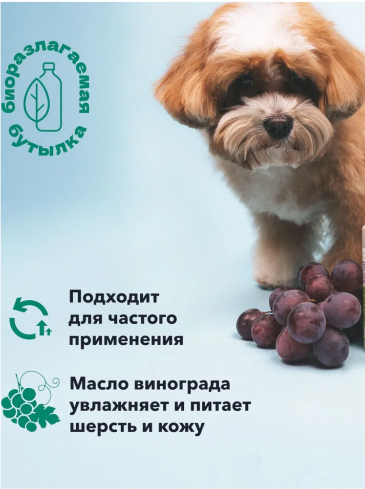Парфюм для животных с изысканным ароматом белого винограда создан на основе безопасных компонентов для применения в груминг салонах и дома. Масло винограда увлажняет и питает шерсть и кожу. Стойкий и насыщенный аромат нейтрализует неприятные запахи на шерсти и коже. Шлейф остается на шерсти в среднем 3-5 дней.