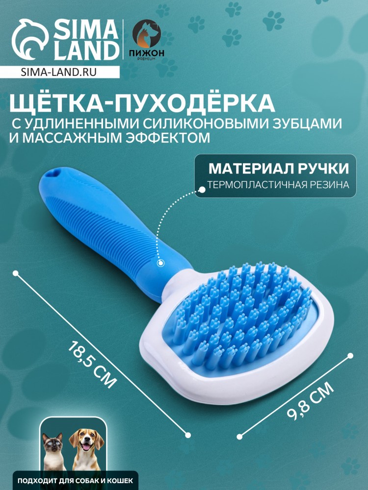 Пуходёрка, 9.8×18.5, с удлинёнными силиконовыми зубцами и массажным эффектом, пластик, голубая