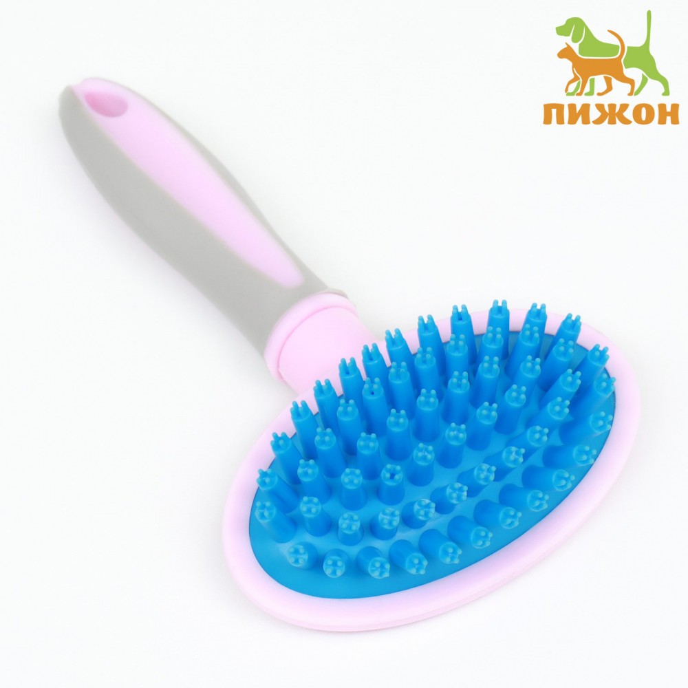 Щётка-массажёр для животных, 9.5×16.5 см, с силиконовыми зубьями, средняя, пластик, розовая, голубая