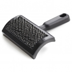 Изделие с пластиковой ручкой удобно лежит в руке и не причиняет дискомфорта животному при вычесывании.